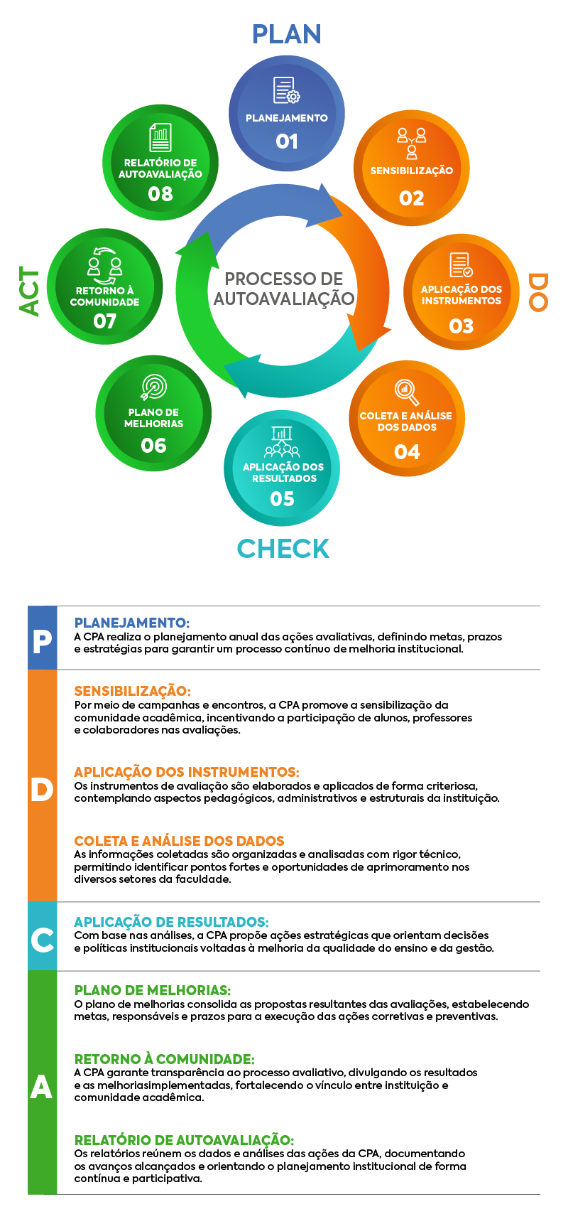 A Comissão Própria de Avaliação (CPA) da Faculdade dos Carajás é o órgão responsável pela condução do processo de autoavaliação institucional. Criada para desenvolver uma “cultura de autoavaliação” entre toda a comunidade acadêmica, a CPA atua de forma ética, participativa e integrada aos processos de planejamento e gestão da IES. Sua missão é promover a reflexão crítica sobre as atividades realizadas, identificando limitações e propondo melhorias contínuas para garantir a qualidade do ensino, da pesquisa e extensão.