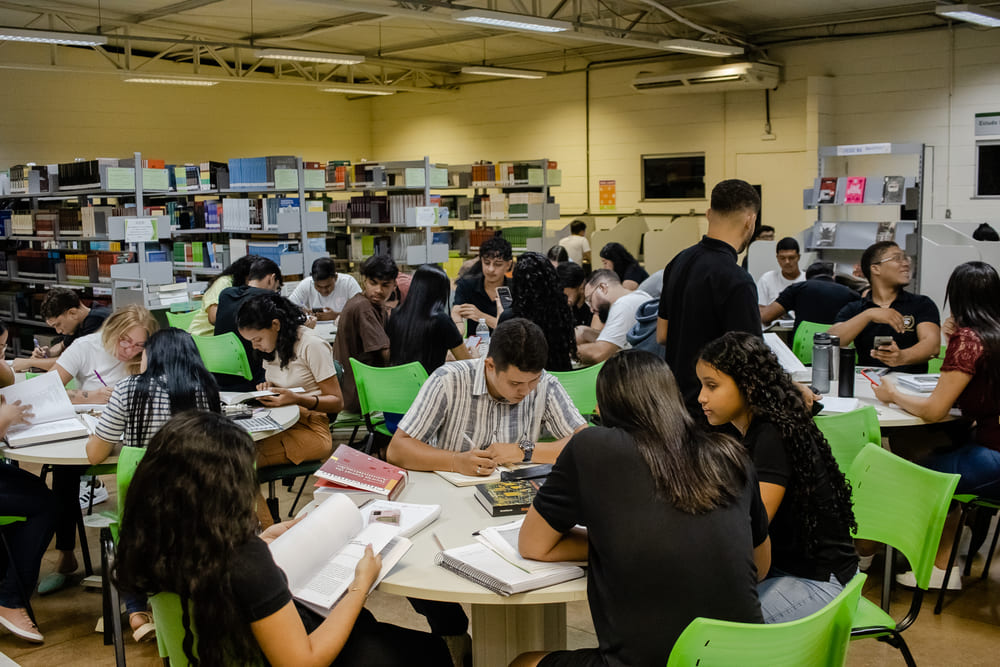 • Biblioteca com salas de estudo individual e em grupo: local climatizado, com acesso a bases digitais e espaços que estimulam a autonomia acadêmica.