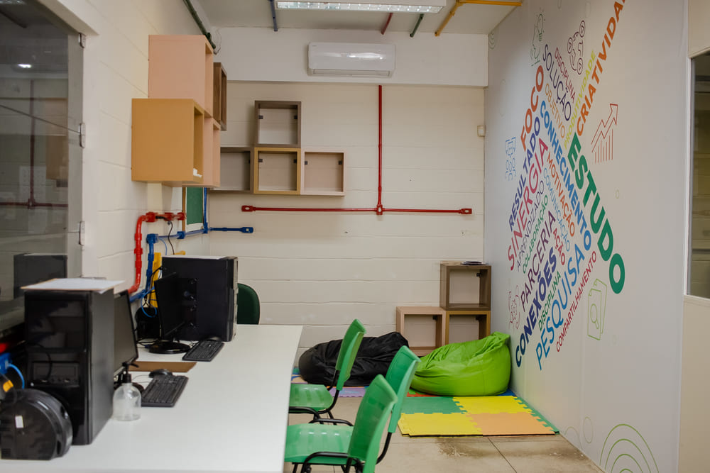 • Sala de Inovação e Multimeios: equipada com recursos audiovisuais, mobiliário flexível e tecnologia de apoio ao ensino ativo. Um ambiente ideal para aulas interativas, oficinas e dinâmicas colaborativas.