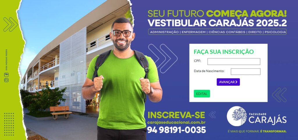 Estudar na Faculdade dos Carajás é dar um passo decisivo rumo a uma formação de qualidade, com infraestrutura moderna, professores experientes e metodologias inovadoras.